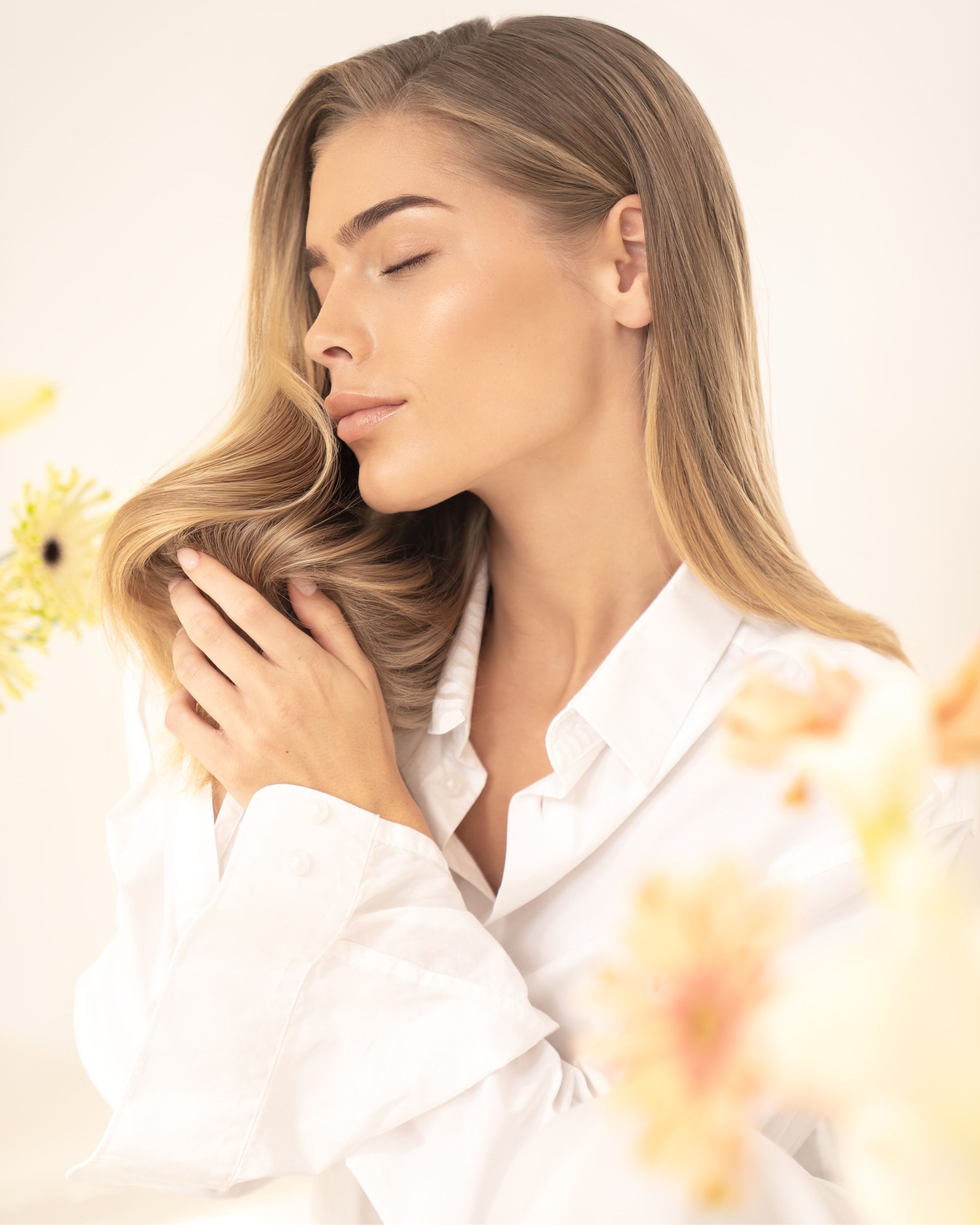 Auch die Technik macht den Unterschied. Wird das Haar in Wuchsrichtung geföhnt, legt sich die Schuppenschicht an. Das Ergebnis wirkt ruhiger und glänzender. Sanfte Tools und kontrollierte Hitze helfen zusätzlich, die Haarstruktur zu schonen und Frizz gar nicht erst entstehen zu lassen.